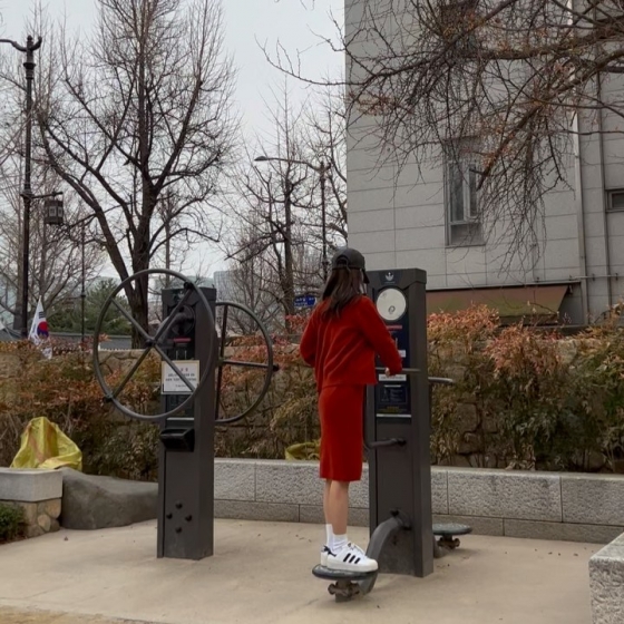 공개된 사진 속 지민은 위아래로 빨간 옷을 갖춰입고 나들이에 나선 모습. 그는 공원에서 운동기구를 하는가 하면, 개구진 표정으로 포즈를 취했다.