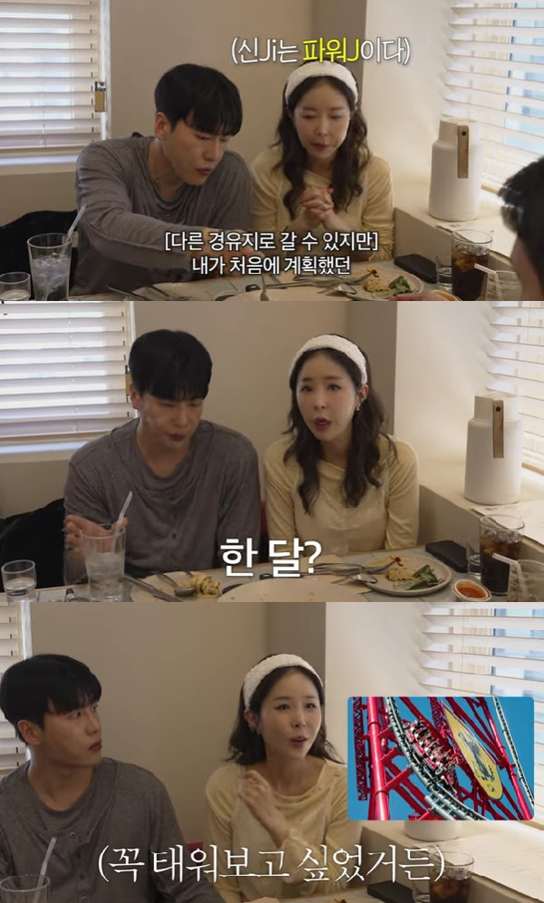 공개된 영상 속 신지는 결혼이 한 달 남은 시점에 신혼여행을 안 가기로 결정했다고 밝혔다. 그는 "두바이가 경유지였는데 중동사태가 길어지고 있다"며 "(다른 경유지로 갈 수도 있지만 내가 처음에 계획했던 플랜이 다 망가지기도 하고, 상황이 좀 괜찮아졌을 때 원래 원하던 코스로 가는 게 어떨까 싶다"고 말했다.