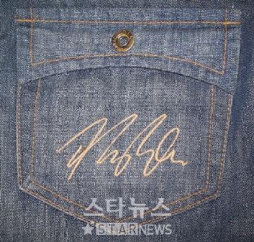 25일 출시되는 '소지섭 진'을 입은 소지섭(위)과 '소지섭 진' 뒷주머니에 수놓은 그의 사인(아래).