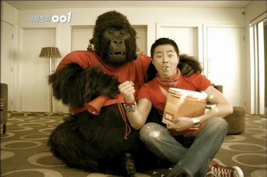 KT 국제전화 001은 올해초부터 멀리 떨어진 가족을 그리워하는 고릴라를 사육사인 조인성이 '국제전화'로 달래준다는 내용의 코믹 CF를 선보이고 있는데, 이 광고에서 조인성과 함께 '투 톱' 모델로 출연한 고릴라의 몸값이 국내 톱스타 수준이라는 것.