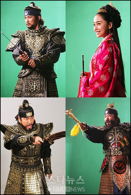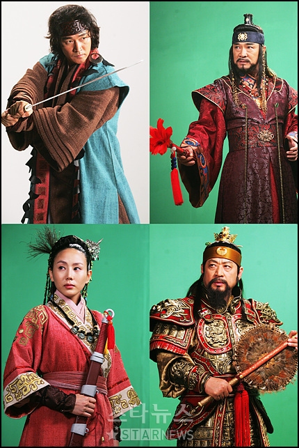 이번에는 당나라 진영. 왼쪽부터 시계 방향으로 비운의 영웅 이해고 역을 맡은 정보석, 거란족 출신 당나라 명장 설인귀 역을 맡은 이덕화, 당태종 역을 맡은 송용태, 대조영의 첫사랑 초린 역을 맡은 박예진.