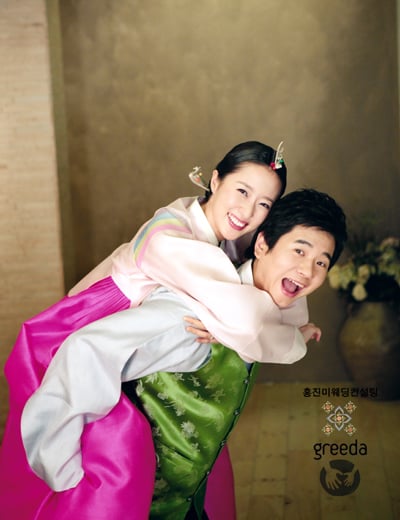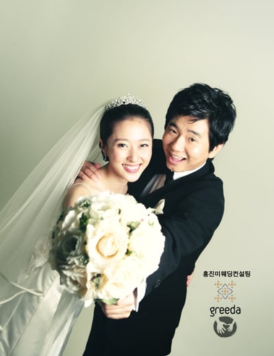 촬영을 진행한 홍진미웨딩컨설팅 측은 "개그맨이란 이미지를 많이 살리지 않고 결혼이란 주제에 중점을 뒀다"며 "신랑은 고급스럽고 세련된 컨셉트, 앳된 모습이 역력한 신부는 청순하고 우아한 이미지를 살렸다"고 설명했다.