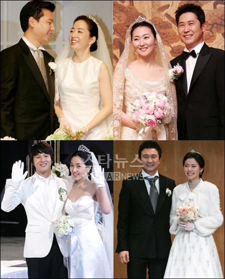 쌍춘년에 화촉을 밝힌 커플들. 오른쪽위부터 시계방향으로 신동엽-선혜윤PD, 주영훈-이윤미, 차태현-최석은씨, 노현정 아나-정대선씨.