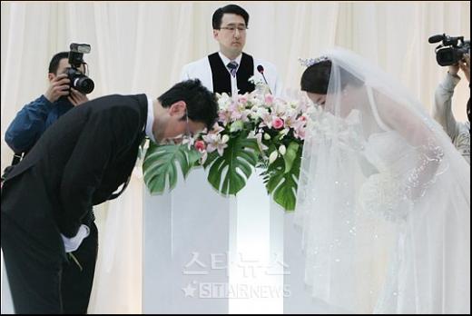 후배 개그맨 윤석주의 사회로 진행된 이날 결혼식은 소망교회 노환규 목사가 주례를 맡아 기독교 식으로 진행됐다.