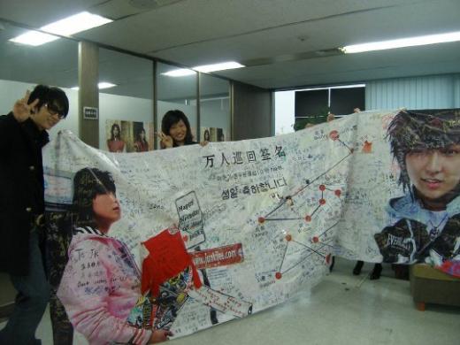 이준기 중국팬들이 이날 전달한 것은 가로 10m, 세로 1.5m 크기에 각각 약 1만명의 사인을 담은 대형 플래카드를 10장.