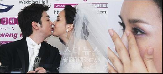 결혼식을 1시간여 앞두고 J.W 메리어트 호텔에서 열린 결혼 기자 회견, 하리수가 남편 미키정과 달콤한 키스를 나누는가 싶더니 어느새 눈물을 흘리고 맙니다.