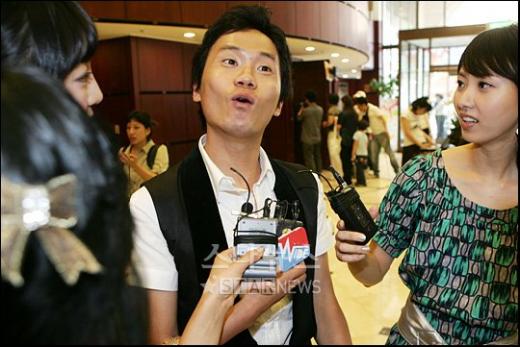 결혼식에 참석한 개그맨 안상태가 취재진과 인터뷰를 하고 있다.