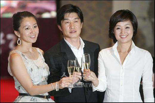 종방연에서 김희애와 김상중, 배종옥이 건배를 하며 자축하고 있다.