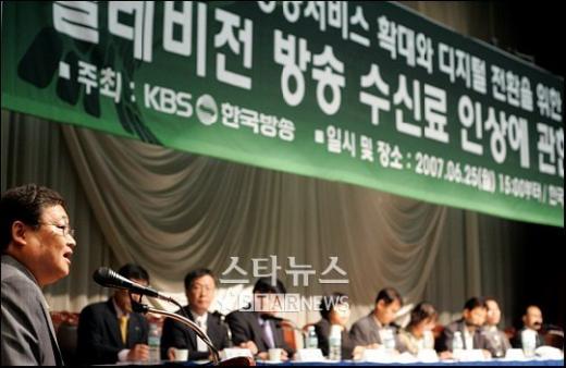 KBS측은 25일 오후 3시 서울 목동 한국 방송회관 3층 회견장에서 '공공 서비스 확대와 디지털 전환을 위한 텔레비전 방송 수신료 인상에 관한 공청회'를 열고 수신료 인상의 목적 등에 대해 밝혔다.