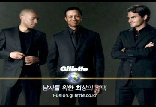 세 스포츠 스타가 함께 출연한 면도기 질레트의 CF가 최근 국내 TV 방송을 시작했다. 운동복이 아닌 검정 수트 차림으로 등장한 세 사람의 모습이 먼저 눈길을 끈다.