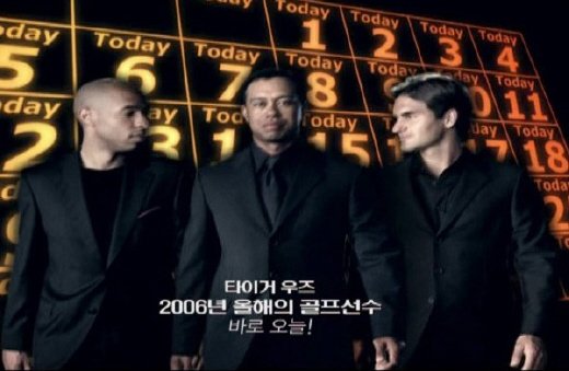 축구스타 티에리 앙리와 골프황제 타이거 우즈, 테니스 챔피언 로저 페더러의 합동 CF가 국내에 상륙했다.