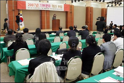 변정수가 30일 오후 2시 서울 용산구 효창동 백범 기념관에서 열린 2007 기부문화 혁신 포럼에 참석해 굿네이버스 홍보대사로 현장에서 활동한 경험담을 참석자들에게 들려주고 있다.