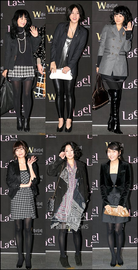 이날 축하하기 위해 참석한 엄정화, 길건, 사강, 박탐희, 한고은, 김효진(윗줄 왼쪽부터 시계방향으로)이 검은색 스타킹과 레깅스 차림으로 올해 겨울 패션 유행을 예감케 했다.