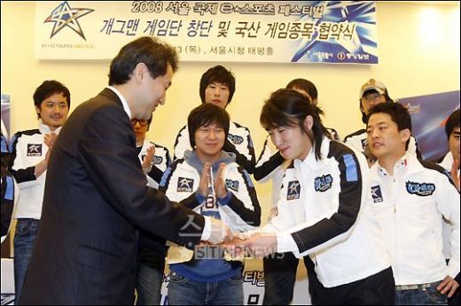 김준호ㆍ김대희 등 '개그콘서트'에 출연하는 개그맨들이 13일 오전 서울시청에서 G&G라는 이름의 개그맨 게임단을 창단하고 2008 서울국제e스포츠페스티벌 홍보대사로 위촉되었다.