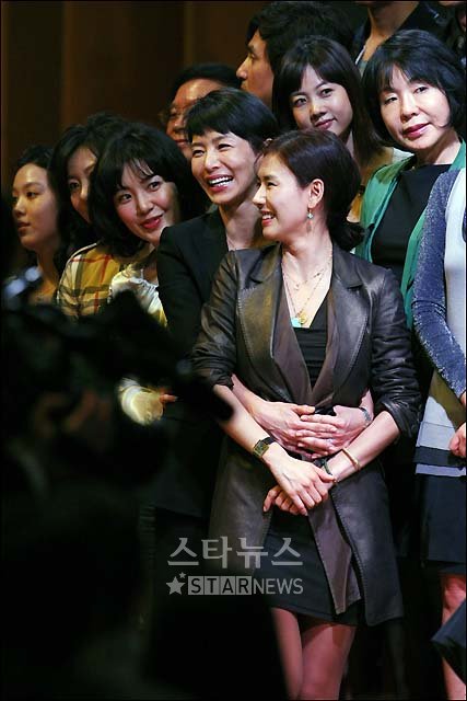 배우 박소현과 김혜리, 윤현숙등 여자 연기자들이 21일 오후 6시 서울 강남구 잠원동 센트럴시티 6층 밀레니엄홀에서 이한위-최혜경 커플의 결혼식을 마치고 기념촬영을 하고 있다.
