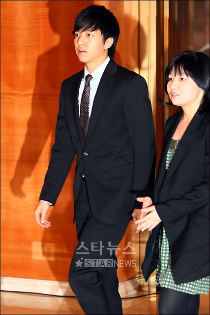 가수 이승기와 조정린이 박명수의 결혼식에 참석해 식장으로 들어가고 있다.