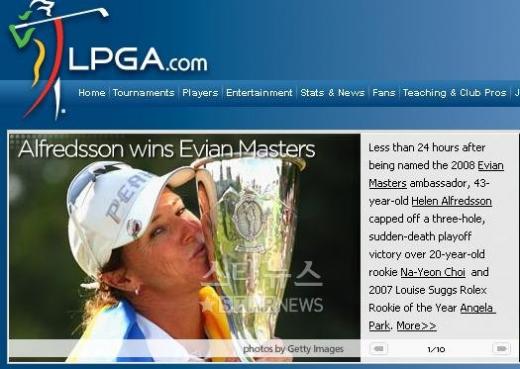↑헬렌 알프레드손의 에비앙마스터스 우승 소식을 전하는 LPGA 공식 홈페이지