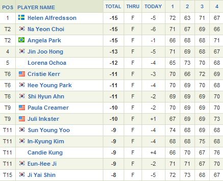 미주한국일보에 따르면 AOL은 자체 스포츠 사이트 '리더보드' 코너에 27일(이하 현지시간) 끝난 LPGA 에비앙 마스터스 대회 참가선수들의 성적을 올리면서 이번 대회 2위를 차지한 최나연 선수를 비롯해 안시현, 신지예, 안선주, 박세리 선수의 이름 옆 국적 표시란에 북한 인공기를 사용했다.