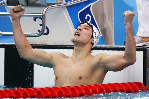 박태환은 한국 수영 사상 최초의 올림픽 금메달을 따고 "편견을 깬 계기가 됐다. 아시아와 한국 선수들도 해낼 수 있다는 다짐을 했으면 좋겠다"고 말했다.
