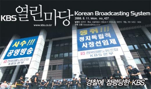 KBS는 11일자로 발간된 제 427호 KBS 사보 '열린마당'의 일면을 '경찰에 점령당한 KBS'라는 사진 등 정연주 사장 해임까지의 이모저모로 채웠다.