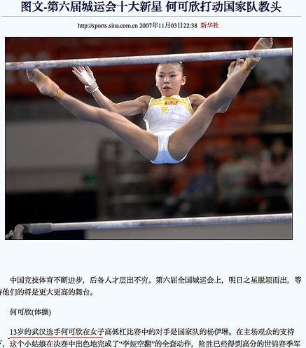 중국 선수의 나이가 가짜라는 주장도 끊임없이 제기됐다. 대회 시작 전부터 뉴욕타임스, AP통신 등 미국 주요 언론은 "중국 체조 대표팀 허커신, 장위위안, 양이린 등은 16살이 안돼 올림픽에 나갈 수 없는 나이"라며 의혹을 제기했다.