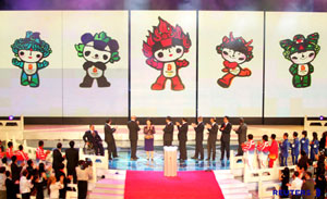 먼저 대회 마스코트인 푸와(복덩이란 뜻)가 괴담에 시달렸다. 푸와는 베이베이(물고기), 징징(판다), 환환(횃불), 잉잉(티베트 영양), 니니(제비)로 이뤄져 있는데 이름을 합쳐 부르면 '베이징은 당신을 환영한다'란 의미가 된다.