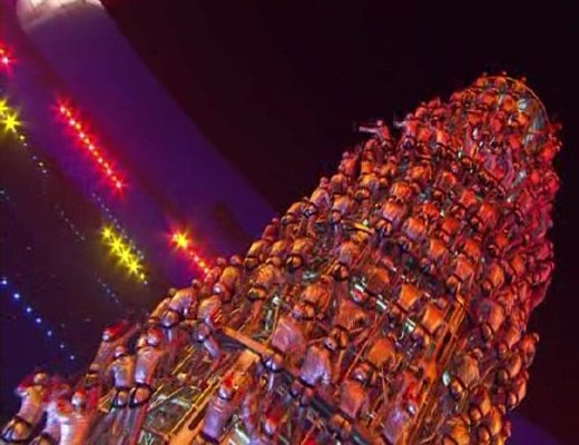 하지만 5000년 역사의 자신감에 개혁개방 30년의 성과가 더해져 다시 한번 세계의 중심에 서겠다는 중화주의는 불편한 장면들도 적지 않게 연출했다. 현란한 조명과 영상을 이용해 4대 발명품을 보여주고 실크로드를 통한 중국 문명의 서양 전파가 표현됐다. 중국은 세계문명의 뿌리로서 자부심을 마음껏 드러냈다.