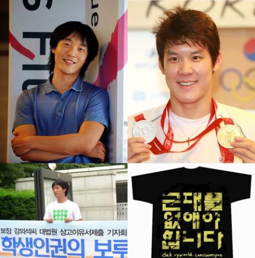 강씨는 최근 대학생주간잡지 대학내일 434호에 기고한 '태환아, 너도 군대 가'라는 제목의 글에서 올림픽으로 병역특례를 받는 것은 평등하지 못하다고 쓴 소리를 던졌다.