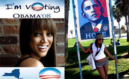 슈퍼모델 타이라 뱅크스도 미국의 싸이월드 격인 마이스페이스에 오바마 지지 사진을 프로필로 설정할 만큼 열성적인 지지자 중 한 명이다. 미국 신인 여성그룹 '걸리셔스'의 멤버 티파니도 오바마 포스터 아래서 찍은 사진을 올려놓기도 했다.
