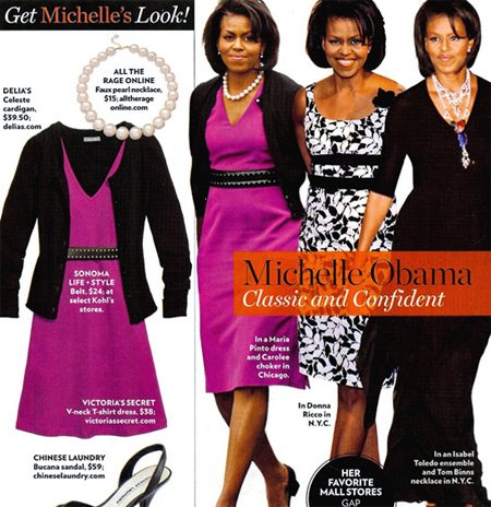 문의가 쇄도하자 미셸은 미국 ABC 방송사의 '더 뷰'라는 프로그램에 출연해 비밀을 털어놓았다. 그가 즐겨 입는 옷은 오바마 부부의 지역구인 시카고의 디자이너인 마리아 핀토의 작품.
