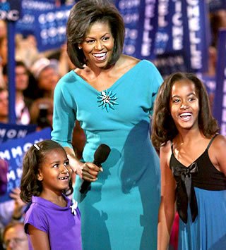 오바마의 두 딸 말리아(10) 샤샤(7)는 선거유세현장에서 어머니 미셸과 함께 동행, 깜찍하고 귀여운 외모로 대중들의 시선을 한 몸에 받았다. 장신의 부모를 닮아 늘씬한 말리아는 벌써부터 미인의 태가 난다.