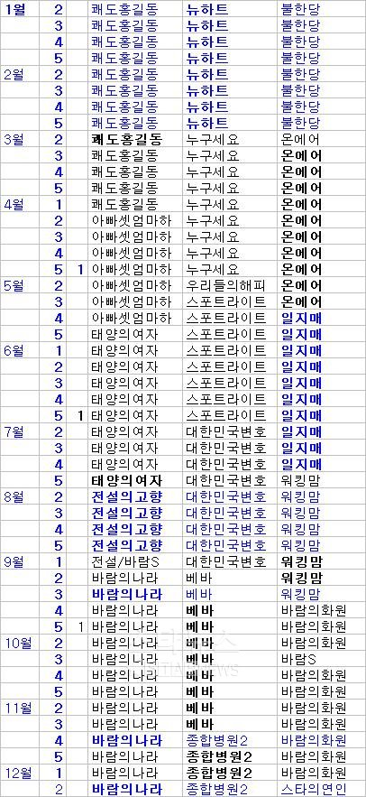 ▶수목드라마..'뉴하트' '온에어' '일지매' '베바'의 압승