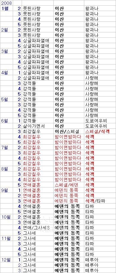 8월26일 1,2회 연속 방송으로 포문을 연 '에덴의 동쪽'은 '타짜'와 처음 맞붙은 9월16일 8회 방송분부터 시청률 26.3%로 '타짜'(12.9%)를 제압하더니 지금까지 단 한번도 월화드라마 1위를 놓친 적이 없다. 이 기간에도 KBS '연애결혼' '그들이 사는 세상'은 낮은 시청률에 허덕여야 했다. KBS는 올해 월화드라마 시청률 1위에 오른 적이 한차례도 없다.