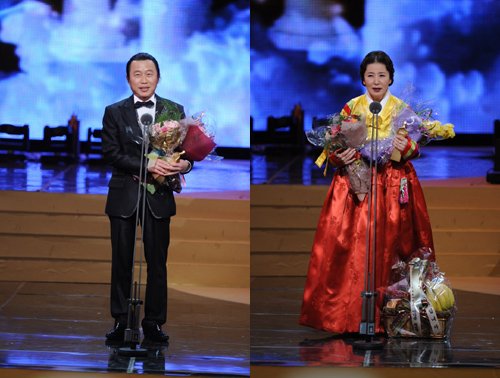 탤런트 이문식과 김자옥이 '2008 SBS 연기대상' 시상식에서 드라마스페셜 남녀조연상 수상의 영예를 안았다.