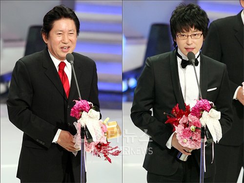 김용건과 엄기준이 2008 KBS 연기대상 시상식에서 남자 조연상을 공동수상했다.