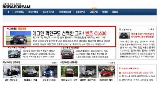 사이버매장 특종매물 코너의 본래 내용 대신 "메르세데스 벤츠 라인업의 최상위를 점하고 있으며 새로운 기술이 가장 먼저 채용되는 퍼스널 쿠페의 정상에 군림하는 모델입니다"는 글귀를 적어 마치 진짜 광고처럼 보인 것이다.