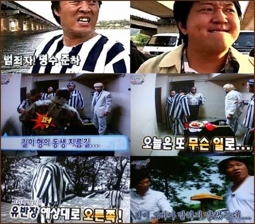 '무도' 멤버들은 게시판의 설문조사에 따라 범죄자형을 가진 박명수, 정준하, 노홍철, 전진과 형사 얼굴로 뽑힌 유재석과 정형돈으로 팀을 나눠 추격전을 벌였다.