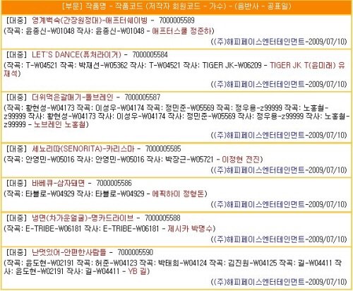 한국음악저작권협회에 따르면 11일 방송된 '무한도전' 올림픽대로 듀엣가요제에 참가한 6곡은 지난 10일 정식으로 협회에 등록했다. 해피페이스엔터테인먼트 이름으로 등록된 6곡은 'LET'S DANCE' '영계백숙' '더위먹은 갈매기' '세뇨리따' '바베큐' '냉면' '난멋있어' 등이다.