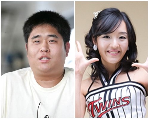 오는 11월21일 결혼식을 올리는 개그맨 문세윤(왼쪽)과 LG트윈스치어리더 김하나(사진출처=LG트윈스치어리더 홈페이지)