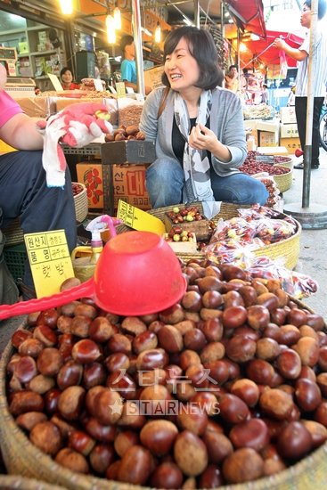 늦었다! 박경림과 추석 장보기를 하기로 한 날. 택시를 타고 달려가는데, 경림씨가 한발 앞서 와 있단다. 헐레벌떡 그녀를 찾는데, 저 멀리서 익숙한 얼굴이 밝은 모습으로 손을 흔든다. "시장 초입에 2000원 짜리 국수집이 있더라구요. 점심 대신 한그릇 했어요. 아주머니들이랑 이야기도 하면서요." 역시 사람좋은 그녀, 박경림이다.