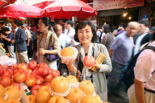 박경림과는 2년 전 추석 즈음 만났다. 당시 기자와 박경림은 결혼 후 처음 명절을 맞는 새내기 주부였다. 이젠 3년차 주부로 다시 추석을 맞았다. 이번 추석 장보기를 위해 만난 곳이 바로 경동시장. 추석을 앞둬서인지 입구부터 북적거린다. 우리는 입이 떡 벌어지는 인파를 가로질러 경동시장부터 청량리 청과물도매시장까지를 함께 누볐다.