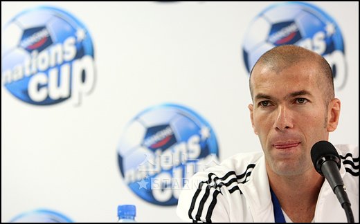 축구스타 지네딘 지단이 30일 오후 서울 목동축구경기장 컨퍼런스룸에서 열린 '다논 네이션스 컵(DNC) 기자간담회'에서 통역기 착용을 하지 않고 취재진들의 질문을 듣고 있다. 취재진들의 질문에 다소 난감한 표정을 짓고 있다