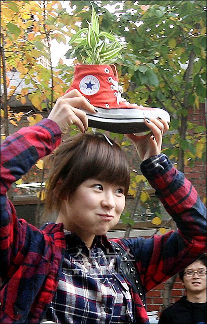 배우 최강희가 30일 오후 서울 홍대의 한 바에서 열린 '컨버스 인디 컬쳐 페스티벌'에 참석해 컨버스 화분을 들고 퇴장하고 있다.