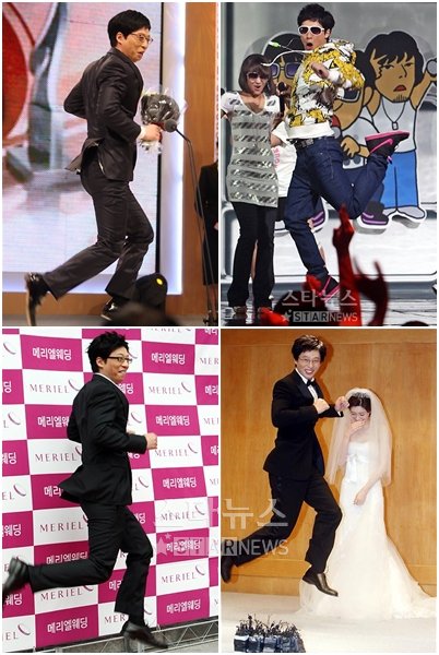실제로 유재석은 지난해 6월 초 결혼을 발표하는 기자회견 자리에서 취재진의 요구에, 거부 없이 '메뚜기춤'을 췄다. 한 달 뒤인 그 해 7월 초 결혼식 날에도 기자회견 때 다시 한 번 '메뚜기춤'을 선보였다.