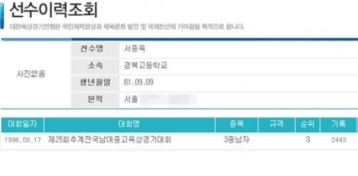 대한육상경기연맹에 27일 문의하자 “선수이력 중 서종욱이라는 이름으로 확인결과 전산에 기록된 것은 1996년 대회기록 뿐이다”고 답했다. 연맹측은 “대회에 출전했다면 기록이 남아 있을 것이다. 수상기록이 누락되는 일은 없다”고 밝히며, “다만 당시 전산 시스템이 활성화되지 않아 기록이 서면 등의 양식으로 따로 보관돼 있을 가능성이 있다”고 덧붙였다.