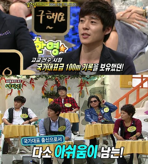 24일 방송된 SBS '강심장'에서 그는 “고교시절 육상선수로 활동했고100m최고 기록이 10초 7이었다. 전국 체전에서 10개 이상의 메달을 땄었다”고 밝혔다. 앞서 9월 12일 출연한 MBC ‘세상을 바꾸는 퀴즈(이하 ‘세바퀴’)’에서는 “고교시절 전국 3위에 이르는 기록을 보유한 육상선수”라고 소개된 바 있으며, 9월 26일 ‘세바퀴’에 다시 출연했을 때는 “국가대표 출신”이라고 언급하기도 했다.