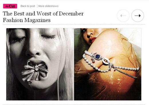 뉴욕 매거진 최신호는 12월 발행된 패션 잡지들 중 최고와 최악의 한 장면을 가리고 그 결과를 기사로 실었다.