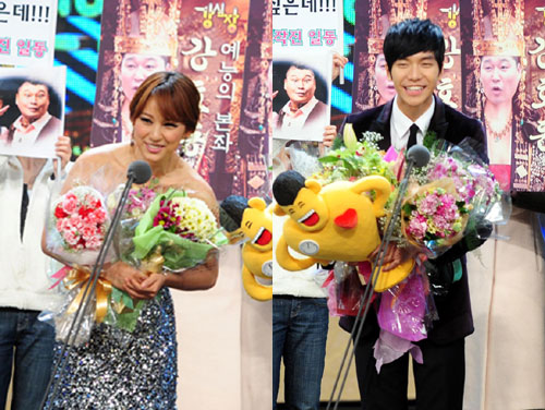 두 사람은 30일 오후 서울 등촌동 SBS공개홀에서 열린 2009 SBS 연예대상 시상식에서 네티즌 최고인기상을 수상했다.