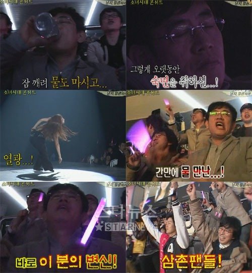 소녀시대 콘서트장에서는 소녀시대 멤버들이 무대 곳곳을 돌며 멤버들에게 인사를 하고 악수를 청하자 이경규, 김국진, 이윤석, 이정진은 쑥스러워하면서도 적극적인 삼촌팬의 모습을 보여줘 웃음을 자아냈다.