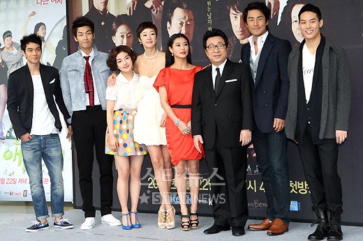 탤런트 이규환, 김영광, 바니, 최여진, 예지원, 임하룡, 김성수, 이선호(사진 왼쪽부터)가 17일 오후 경기도 일산 MBC드림센터에서 열린 새 일일시트콤 '볼수록 애교만점' 제작발표회에 참석해 포즈를 취하고 있다.